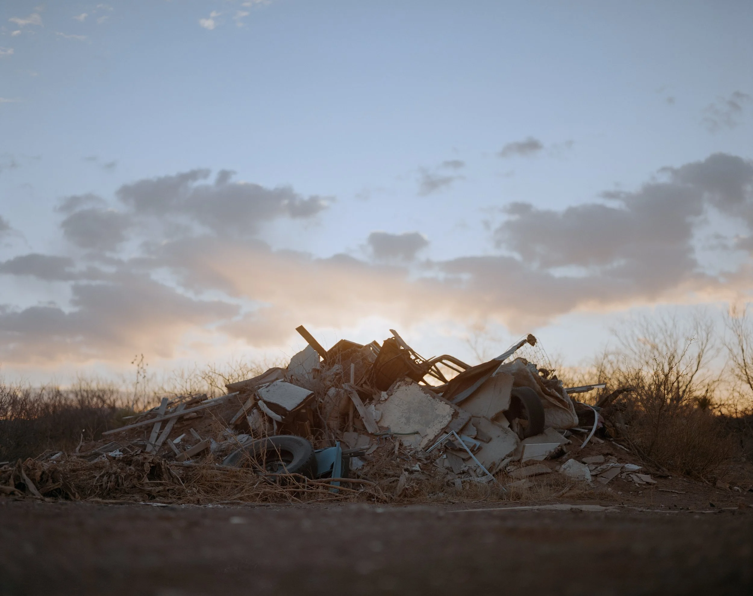 PSG: One of my classmates who lives in West Texas invited me out there. They knew I would really love the dump, which is an unsanctioned place where the residents of this small town, which has a population of 74 people, dump their stuff in the desert. Whoever owns that property got a fine from the town and they had to clean it up, but they didn't really clean it up. They just took a bulldozer and pushed everything into these big mountains.